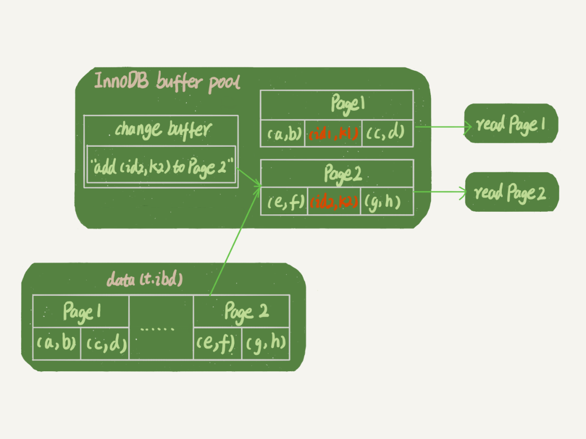 Page 2没有在内存中,就在内存的change buffer区域,记录下“我要往Page 2插入一行”这个信息