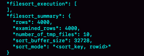 number_of_tmp_files变成10了,是因为这时候参与排序的行数虽然仍然是4000行,但是每一行都变小了,因此需要排序的总数据量就变小了,需要的临时文件也相应地变少了。