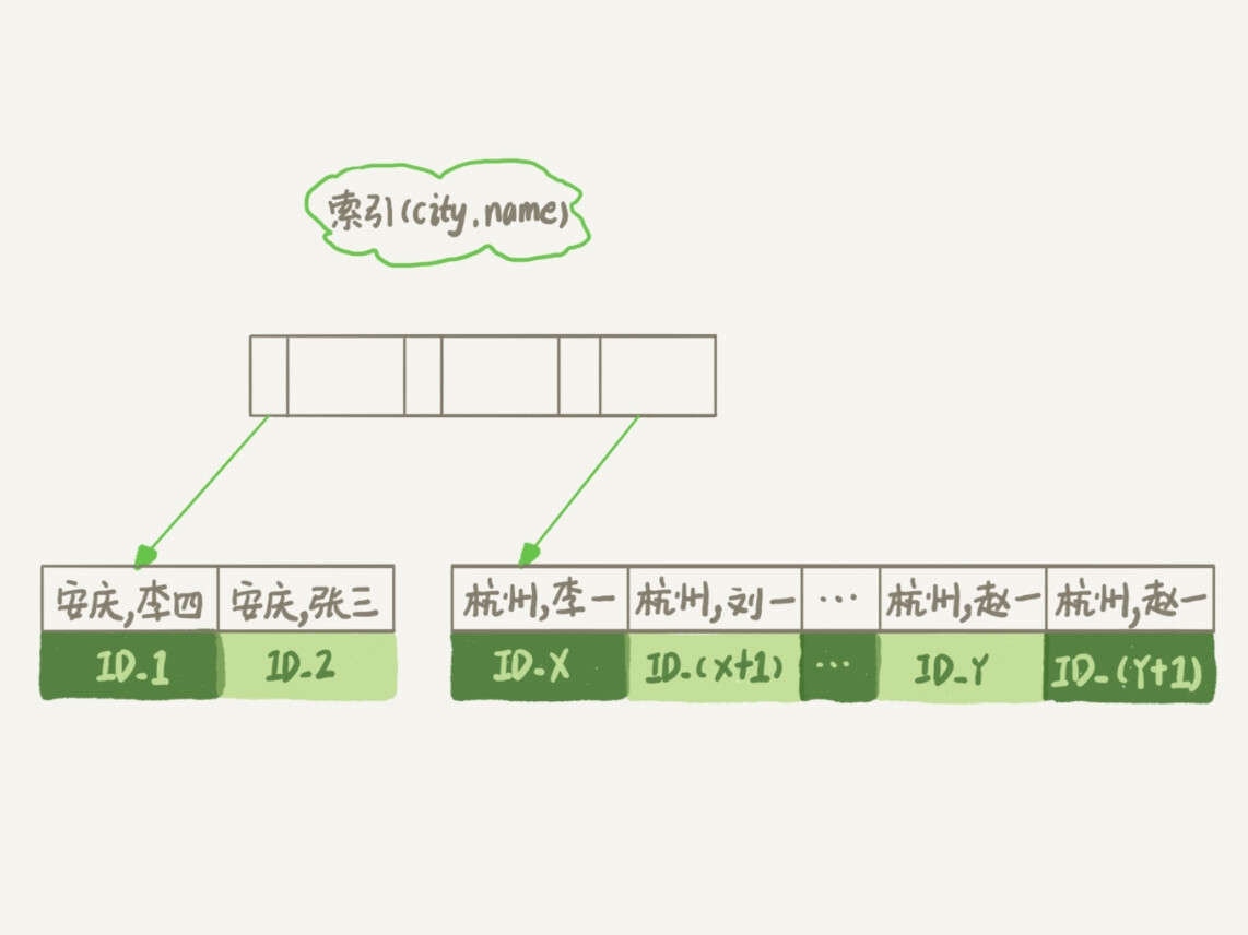 从图中可以看到,满足city='杭州’条件的行,是从ID_X到ID_(X+N)的这些记录。