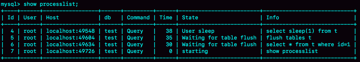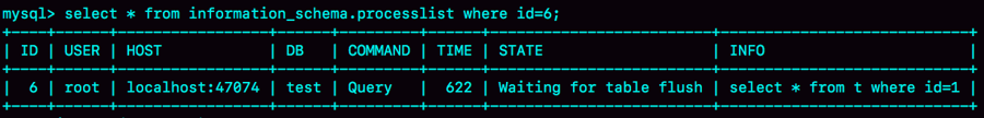 图 7 Waiting for table flush的show processlist 结果