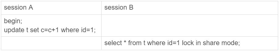 显然,session A启动了事务,占有写锁,还不提交,是导致session B被堵住的原因。