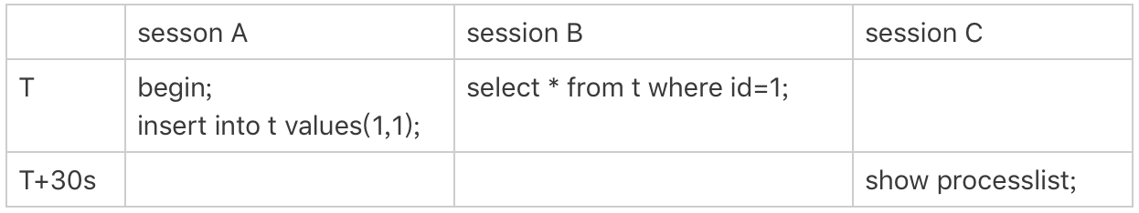 但是需要注意,在show processlist的结果里,踢掉显示为sleep的线程,可能是有损的。我们来看下面这个例子。