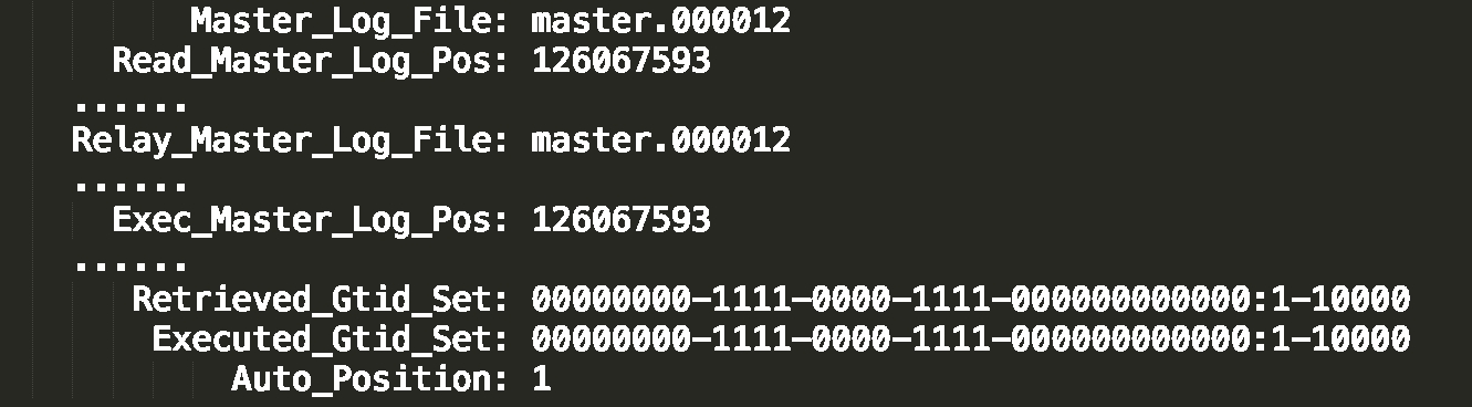 现在,我们就通过这个结果,来看看具体如何通过对比位点和GTID来确保主备无延迟。