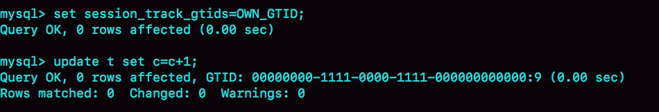 在上面的第一步中,trx1事务更新完成后,从返回包直接获取这个事务的GTID。问题是,怎么能够让MySQL在执行事务后,返回包中带上GTID呢?