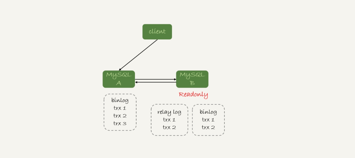 这时,主库上执行完成了三个事务trx1、trx2和trx3,其中: