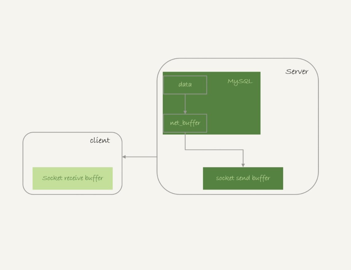 也就是说,MySQL是“边读边发的”,这个概念很重要。这就意味着,如果客户端接收得慢,会导致MySQL服务端由于结果发不出去,这个事务的执行时间变长。