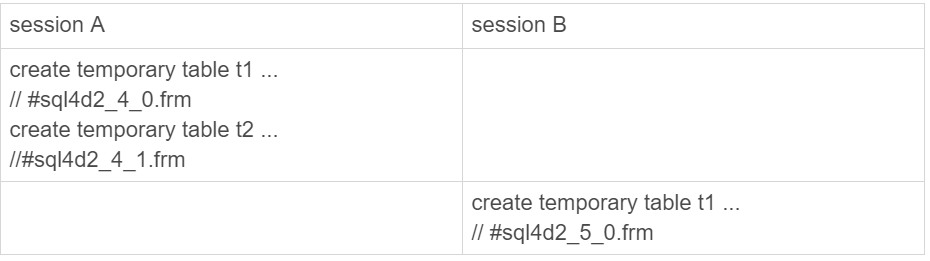 也就是说,session A和sessionB创建的两个临时表t1,它们的table_def_key不同,磁盘文件名也不同,因此可以并存。