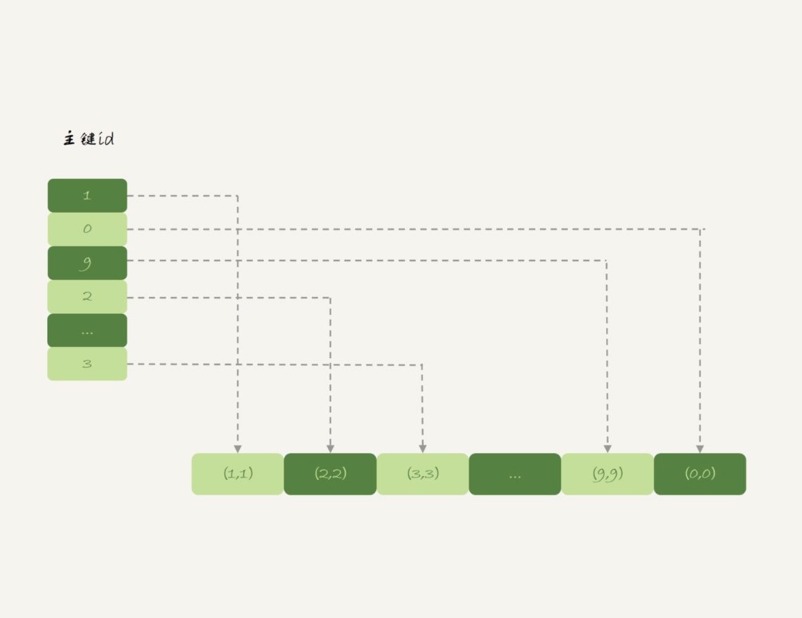 而Memory引擎采用的是把数据单独存放,索引上保存数据位置的数据组织形式,我们称之为堆组织表(Heap Organizied Table)。