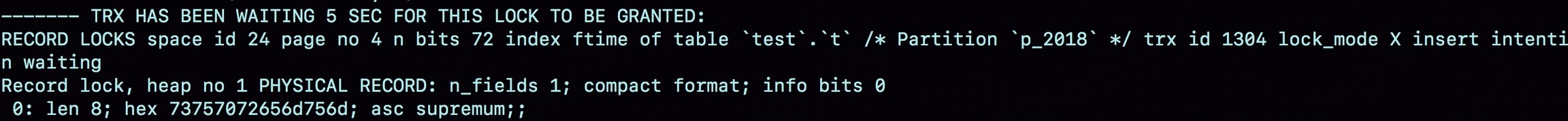 所以,session B要写入一行ftime是2018-2-1的时候是可以成功的,而要写入2017-12-1这个记录,就要等session A的间隙锁。